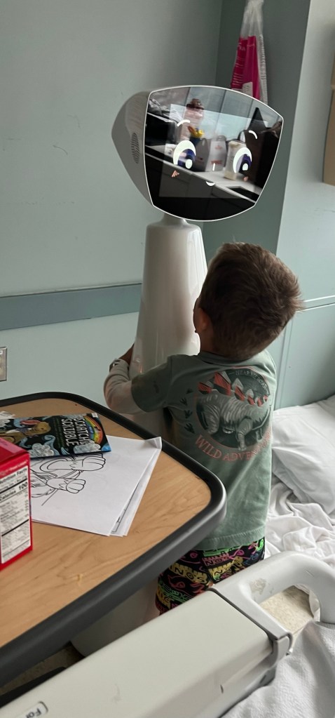 My young grandson has double pneumonia and the good news is, he was discharged from the hospital today! While in the hospital he got a visit, from Robin the robot. This particular robot can play hide and seek, play cards, sing songs, play games, almost anything we asked her she could answer and she actually asked him what he was watching on TV. She knew when he was sad and happy, it was something I have never seen before, ever, and it’s just amazing what this little robot would do and say.
