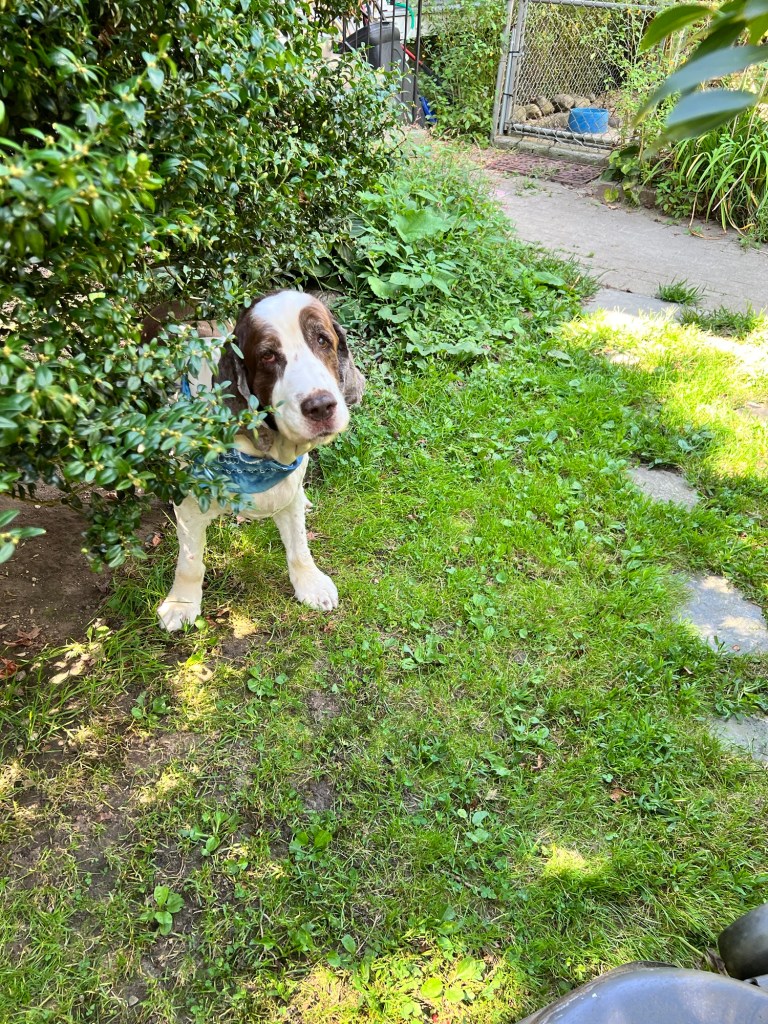 Casey follows me around when I am working out side. He is under the tree and then by the back door.