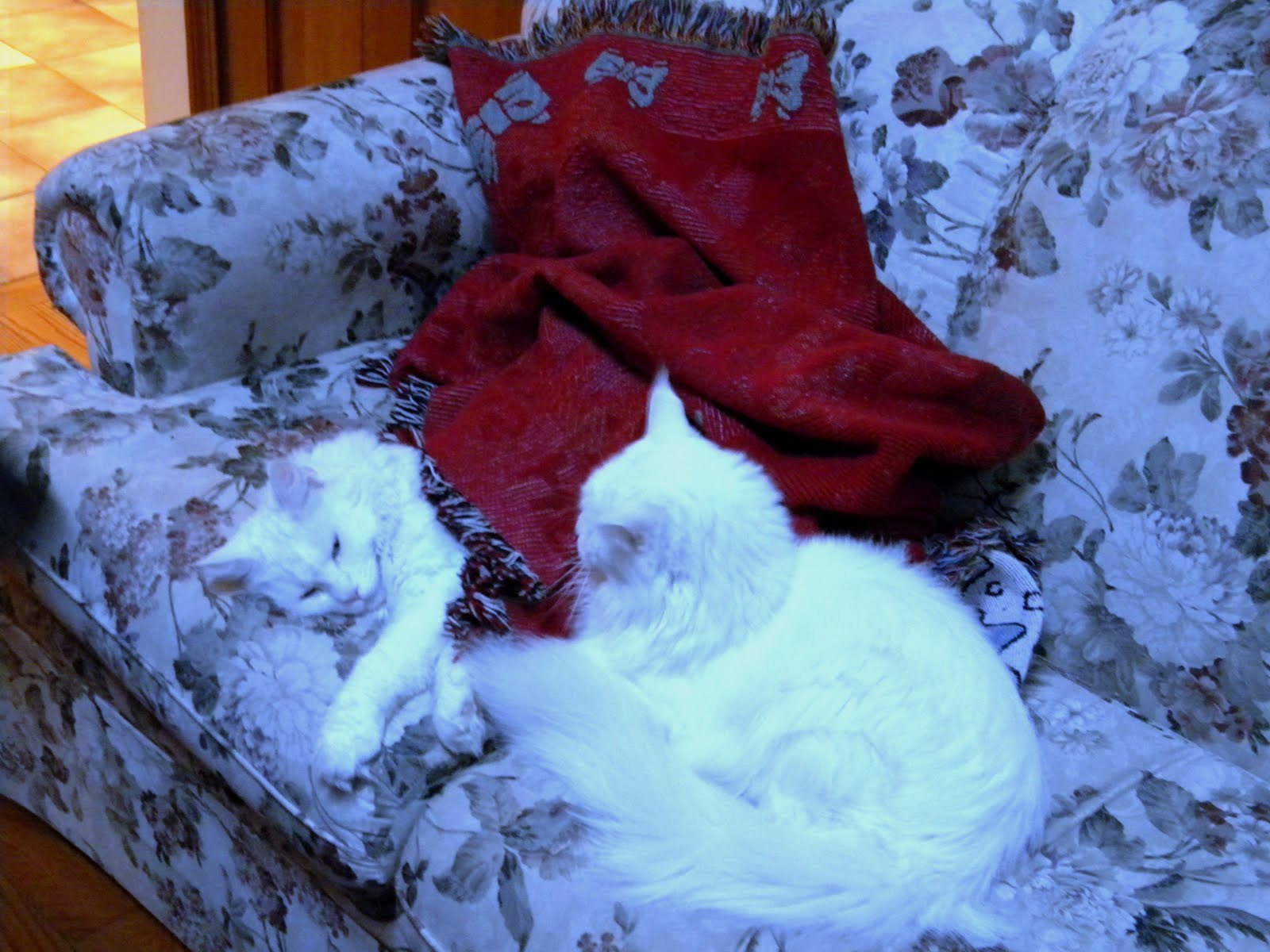 1. Lilly and Scooter are gorgeous kitties and they are really adorable sleeping together…I would love to see the photo of sweet Buffy snuggled in with them!