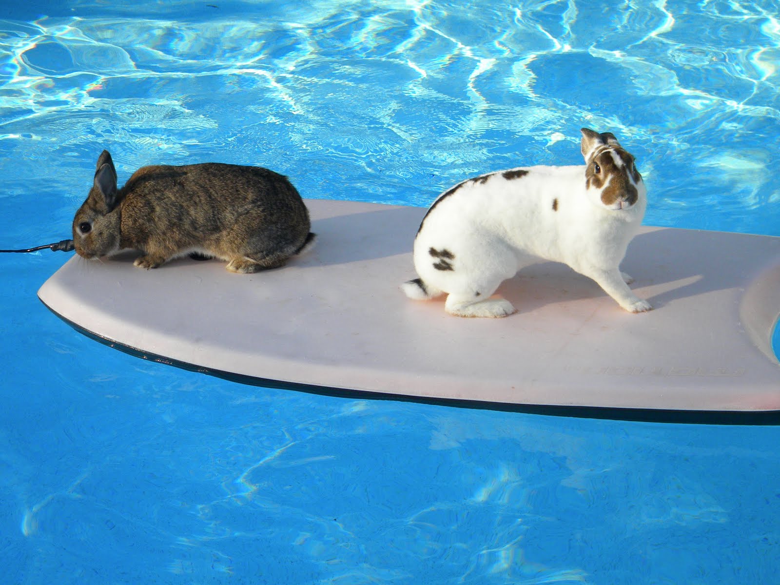 2. Bunnies are adorable. When you put them on a surfboard, it's adorable x10!!!I don't know that I'd be as brave as you are to try this, I'd worry they'd try to jump off. They look like they're enjoying it though.