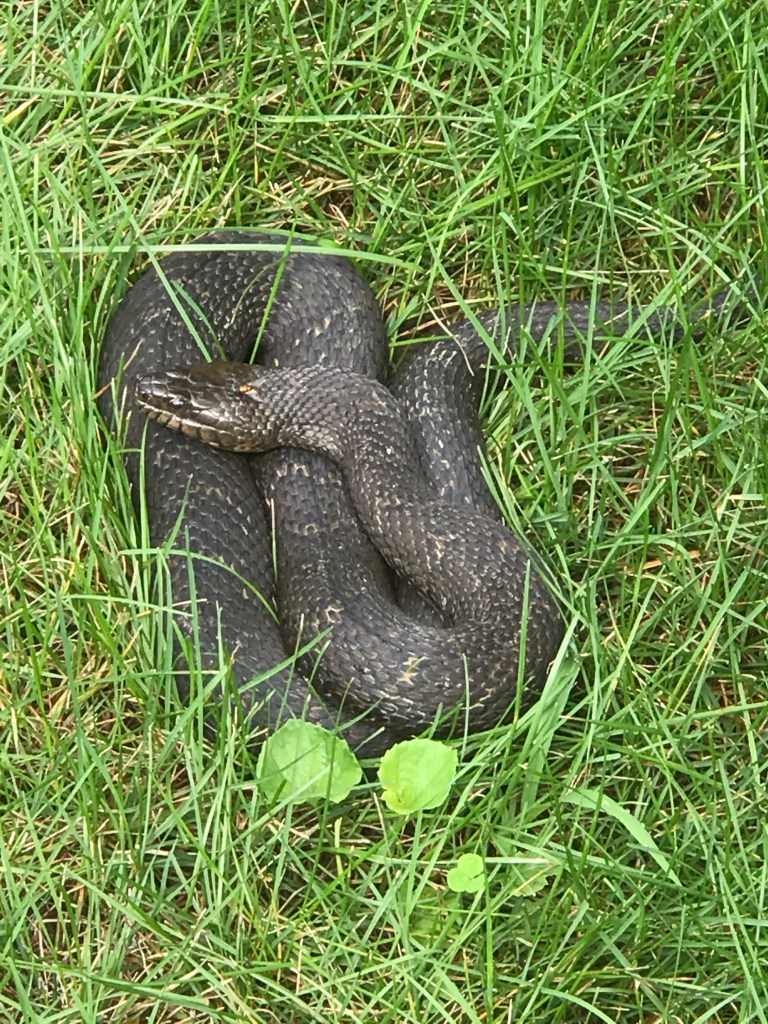 Well this is a little crazy. This snake is resting everyday by the horse wall. I’m not sure why but I think he enjoys the warmth of the sun shine. Nothing bothers him, not the dogs or lawn mower.