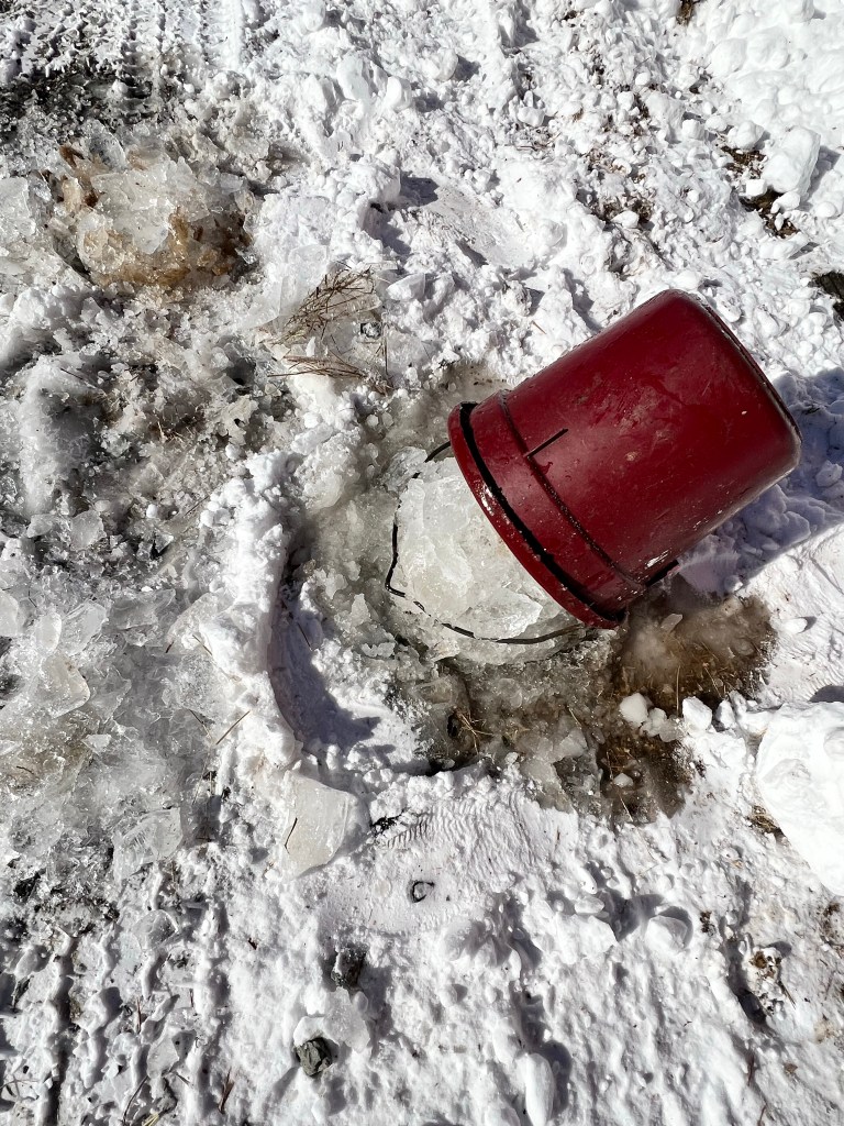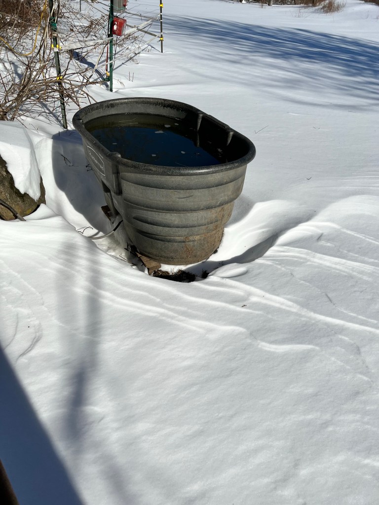 I was surprised to see that snow!! Now the water buckets were frozen solid and this is how we take of that problem…