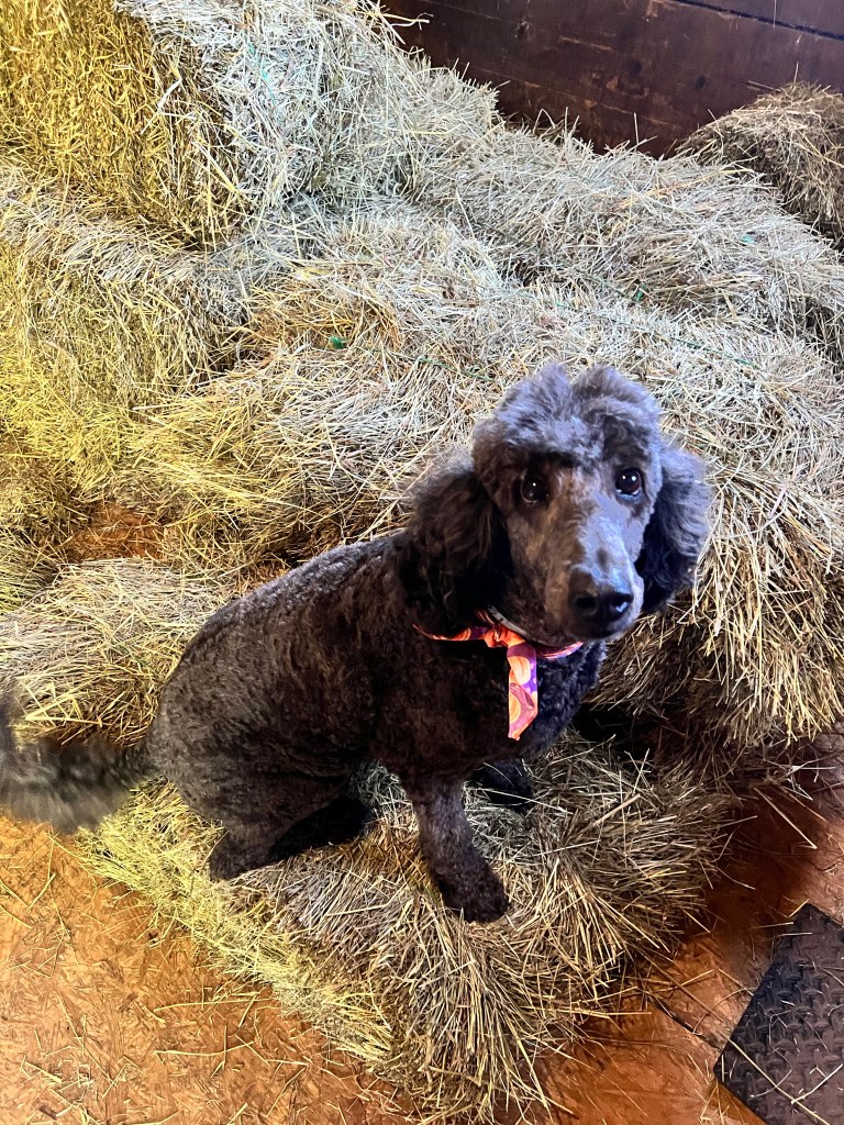 Pepper looks so uncomfortable but she walks on the hay. I think that is her sad face.