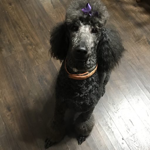 Pepper, the happiest poodle I have ever met. Fun fact: She prances around like she the star!
